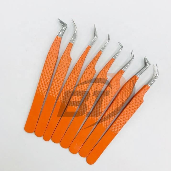 Pince à épiler d'extension de cils enduite de couleur orange Pince à épiler en acier durable pour extensions de cils