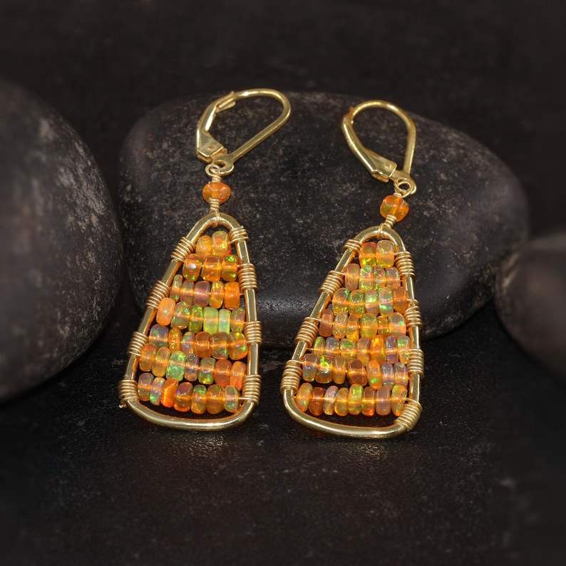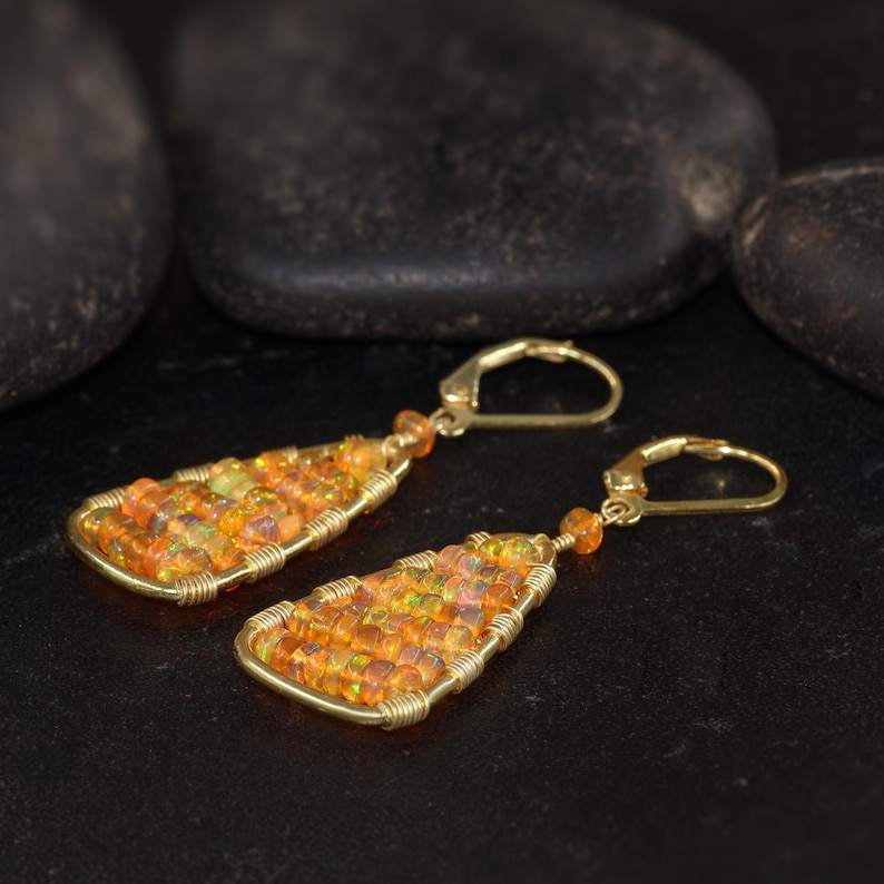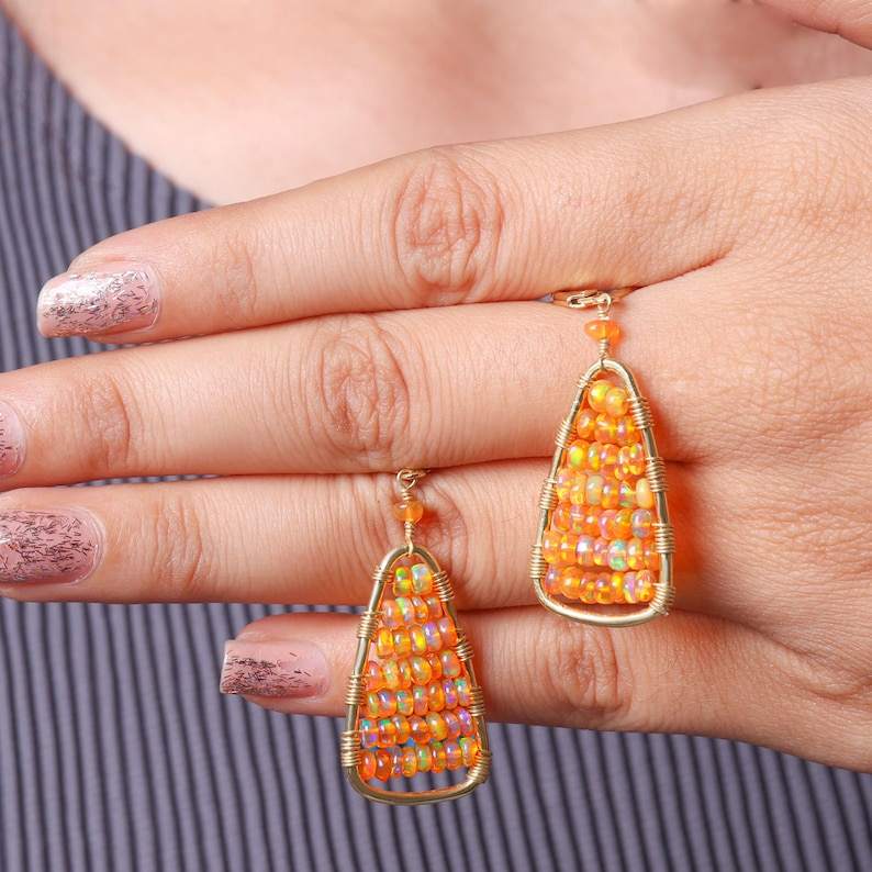 Keyword:Orange Fire Opal Stud Sparkling multi Orange Fire Opal Stones