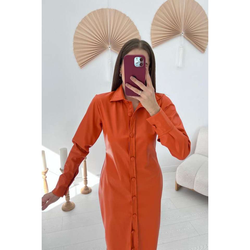 Robe fourreau en cuir orange boutonnée pleine longueur, col cranté, taille naturelle, style simple et élégant