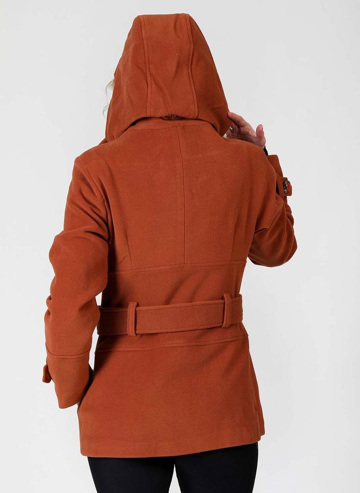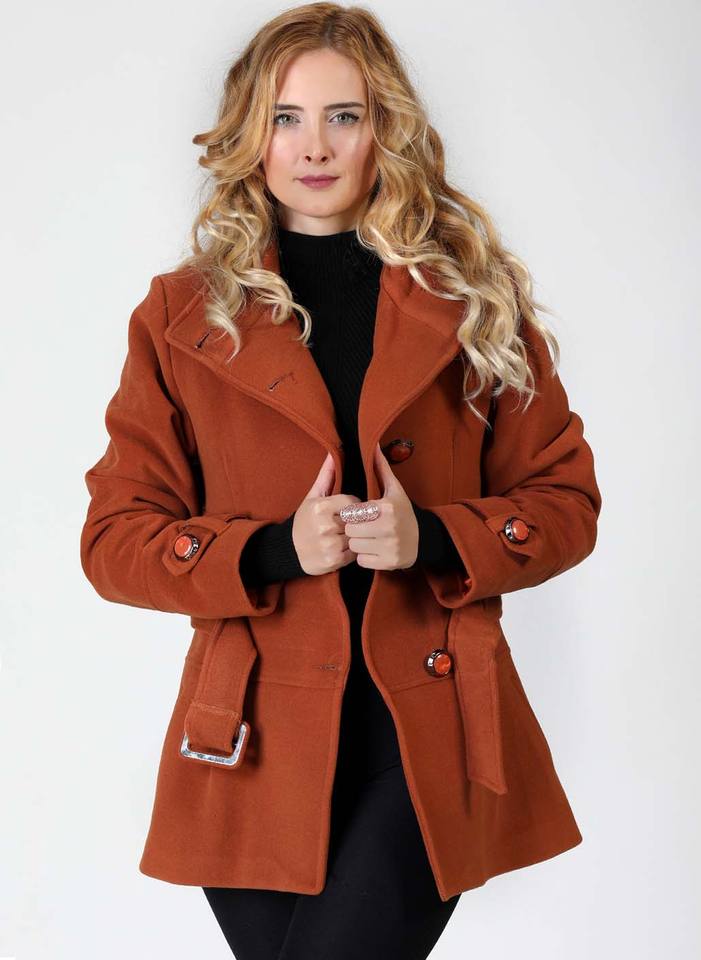 Veste manteau d'hiver longue en cuir de laine à simple boutonnage orange à manches longues pour femmes chaînes d'approvisionnement agiles de stock avec votre étiquette