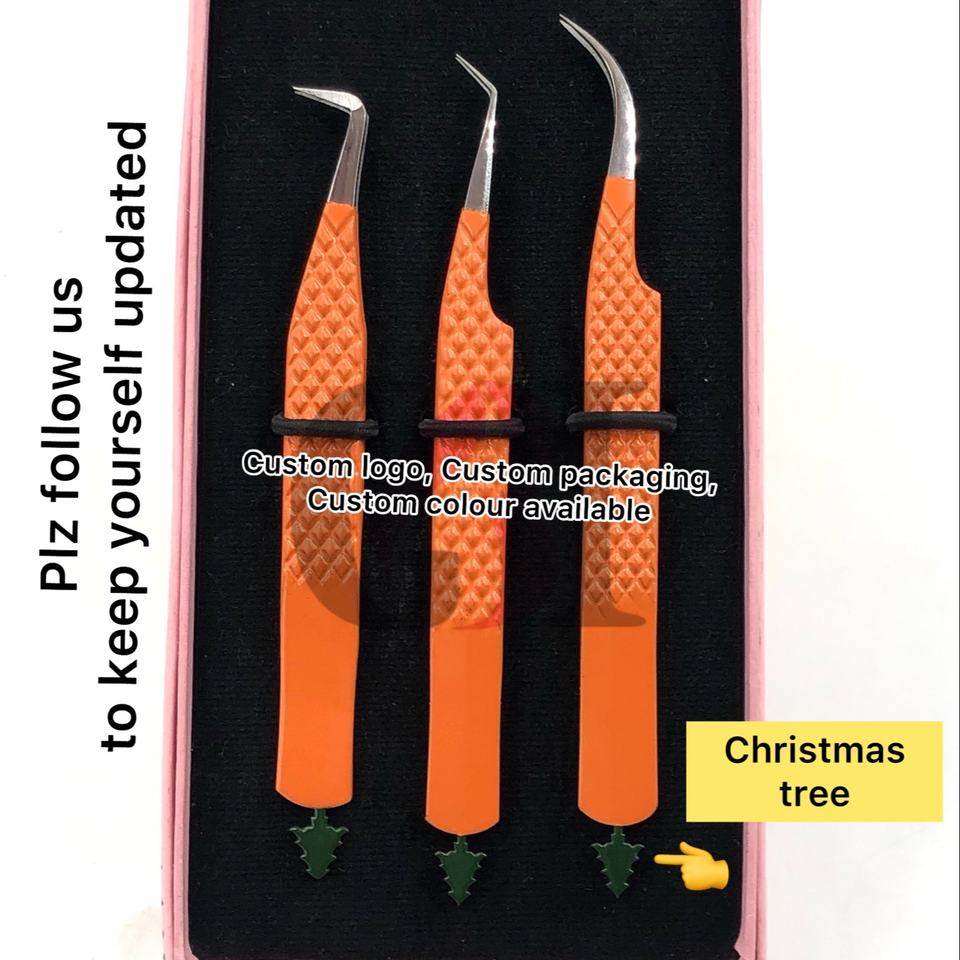 Pince à cils en acier inoxydable à pointe argentée, revêtement en poudre orange, pour extensions de cils, instrument de beauté