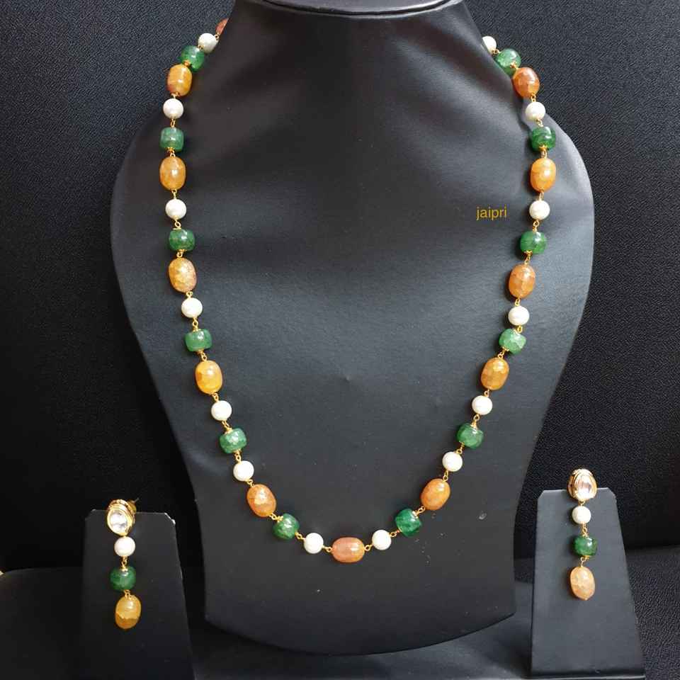 Orange and Green Pearl Beads Long Mala Fashion Jewelry Set