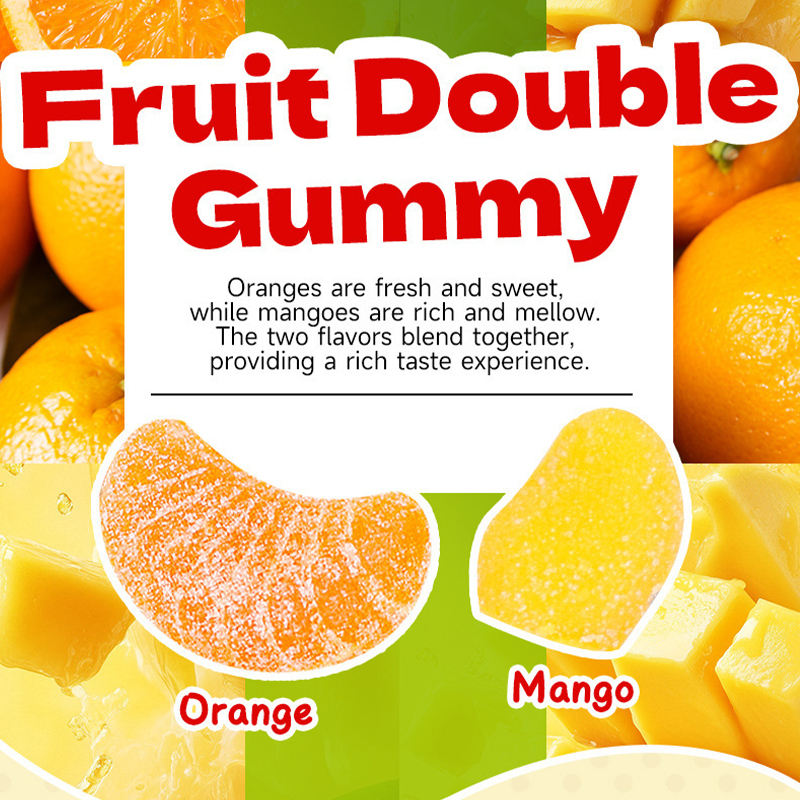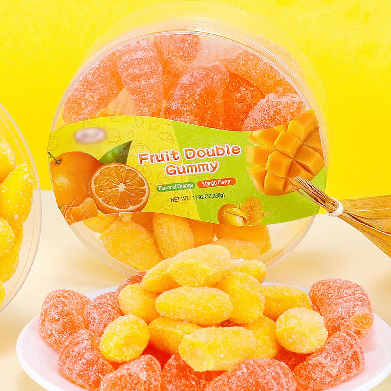 Bonbons gélifiés double saveur orange et mangue, assortiment de bonbons à mâcher, boîte de 338g, friandises pour enfants, vente en gros