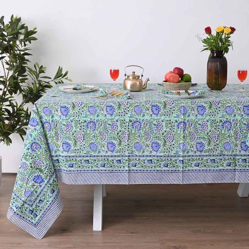 Nappe florale orchidée imprimé bloc à la main coton style ferme bohème