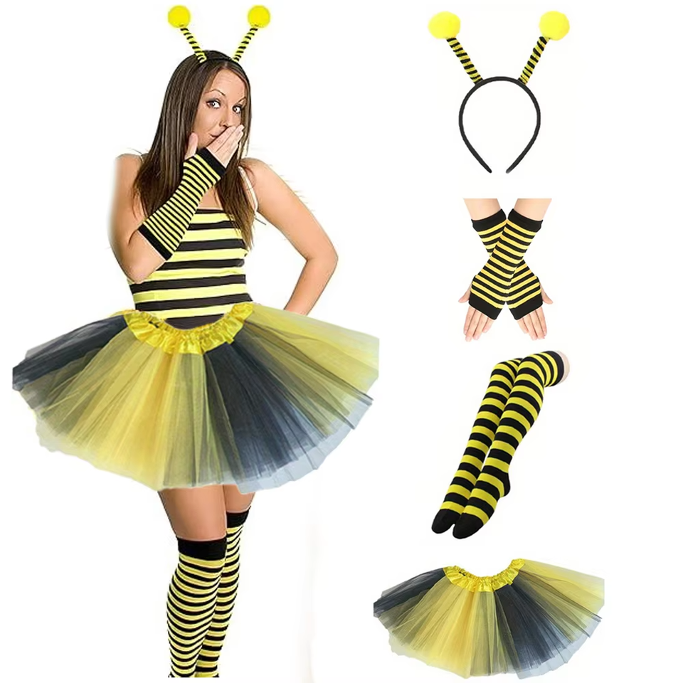 Commandez le kit de costume d'abeille HLC - Bandeau à antennes d'abeille, jupe tutu, chauffe-jambes, gants longs pour Halloween et Noël