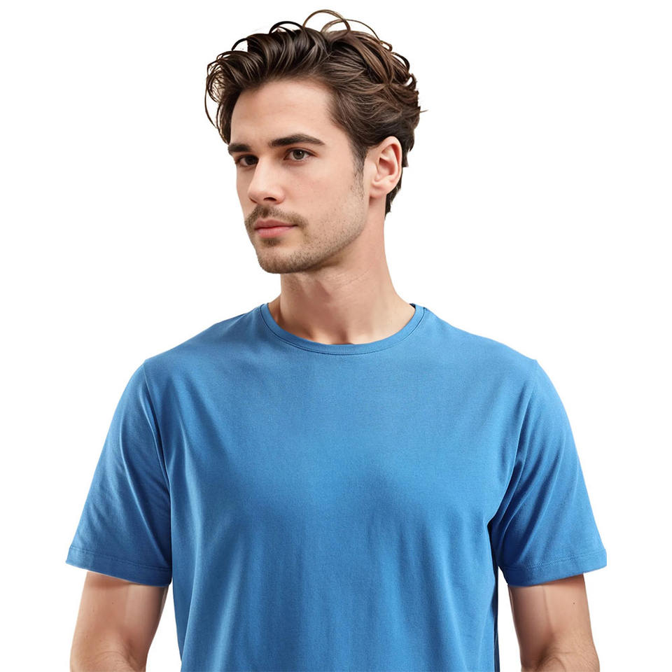 T-shirt à col rond de couleur unie pour hommes, manches courtes personnalisées, coupe régulière, 100% coton, t-shirts pour tous les jours, gym et tenue décontractée