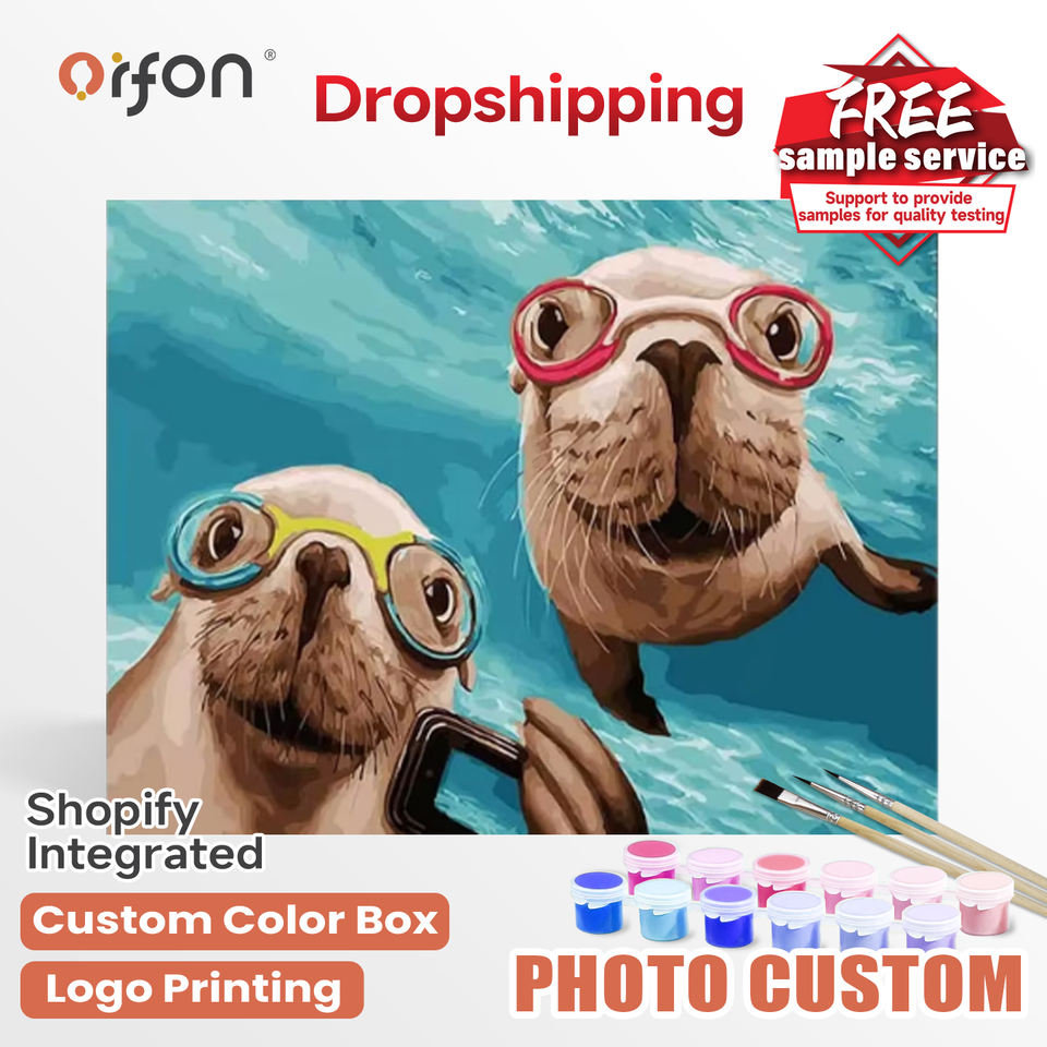 Kits de peinture par numéros Orfon, livraison directe d'usine, adorables lions marins plongeant, art pour adultes, décoration intérieure DIY, vente en gros, professionnel