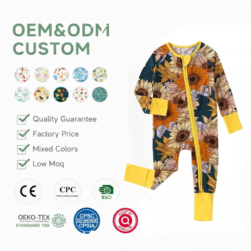 Pyjama en bambou biologique avec fermeture éclair, Combinaison de nuit pour bébé, Combinaison pour nouveau-né, Combinaison de couchage pour bébé, Vêtements pour bébé à impression personnalisée