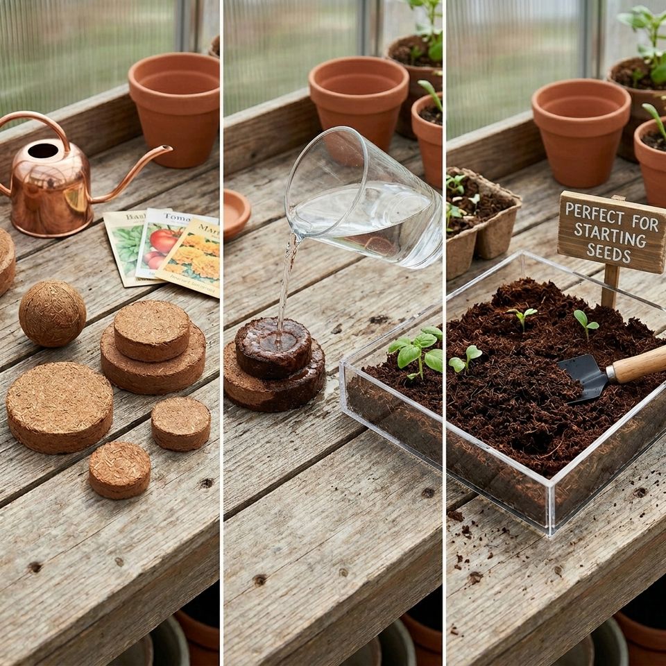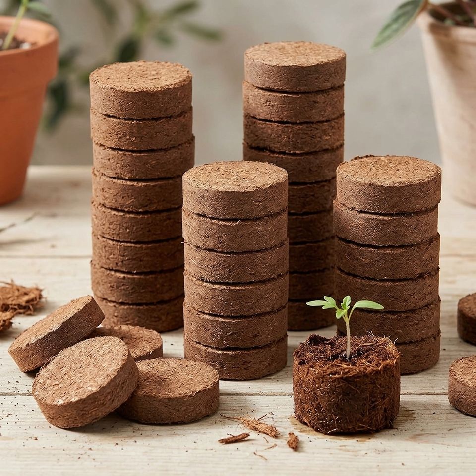 Disques de tourbe de coco bio pour la germination des graines, favorisant la croissance des semis, utilisation en jardinage - Écologique en agriculture et horticulture