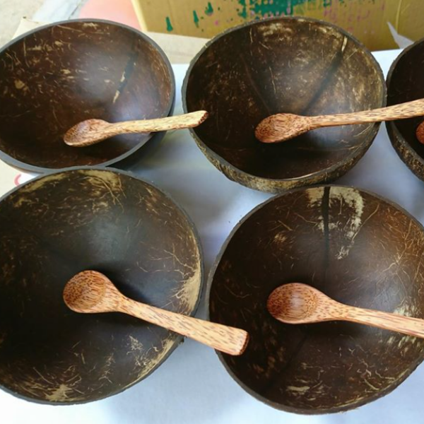 Bol de service en coque de noix de coco biologique, léger, durable, ustensile de cuisine naturel