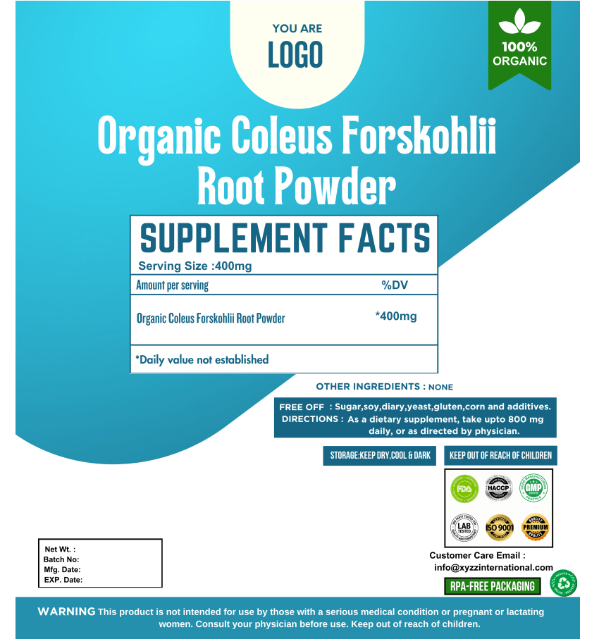 Poudre d'extrait de racine de Coleus Forskohlii naturel pur biologique sauvage-cultivé directement du fabricant indien
