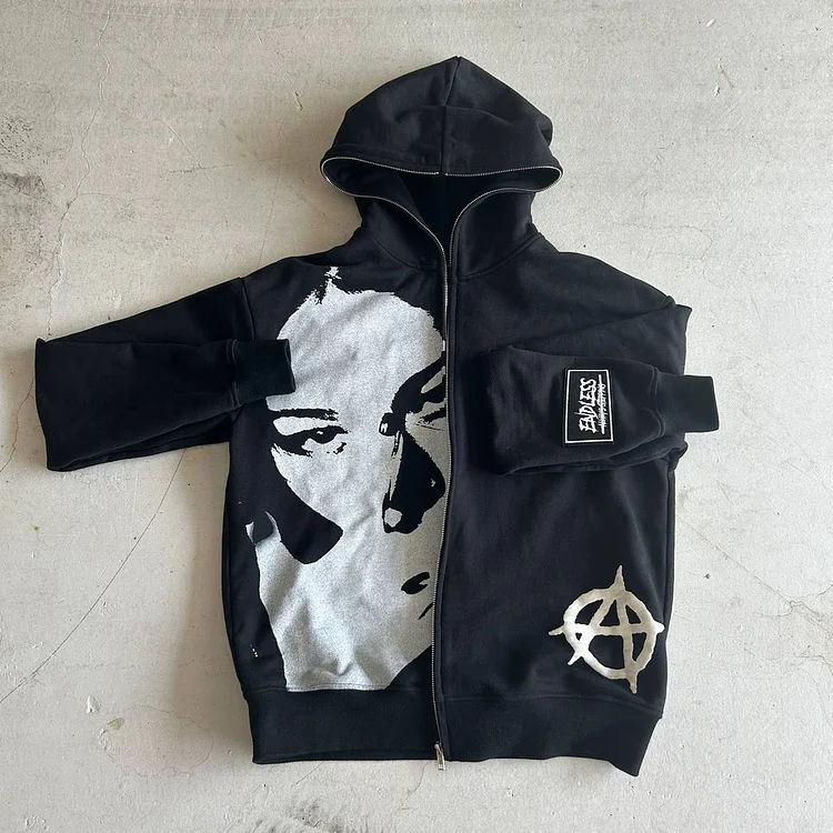 Sweat à capuche en coton biologique imprimé sur toute la surface, sweat à capuche en coton avec impression bouffante, fermeture éclair, polaire lourde et respirante, sweat à capuche à fermeture éclair complète