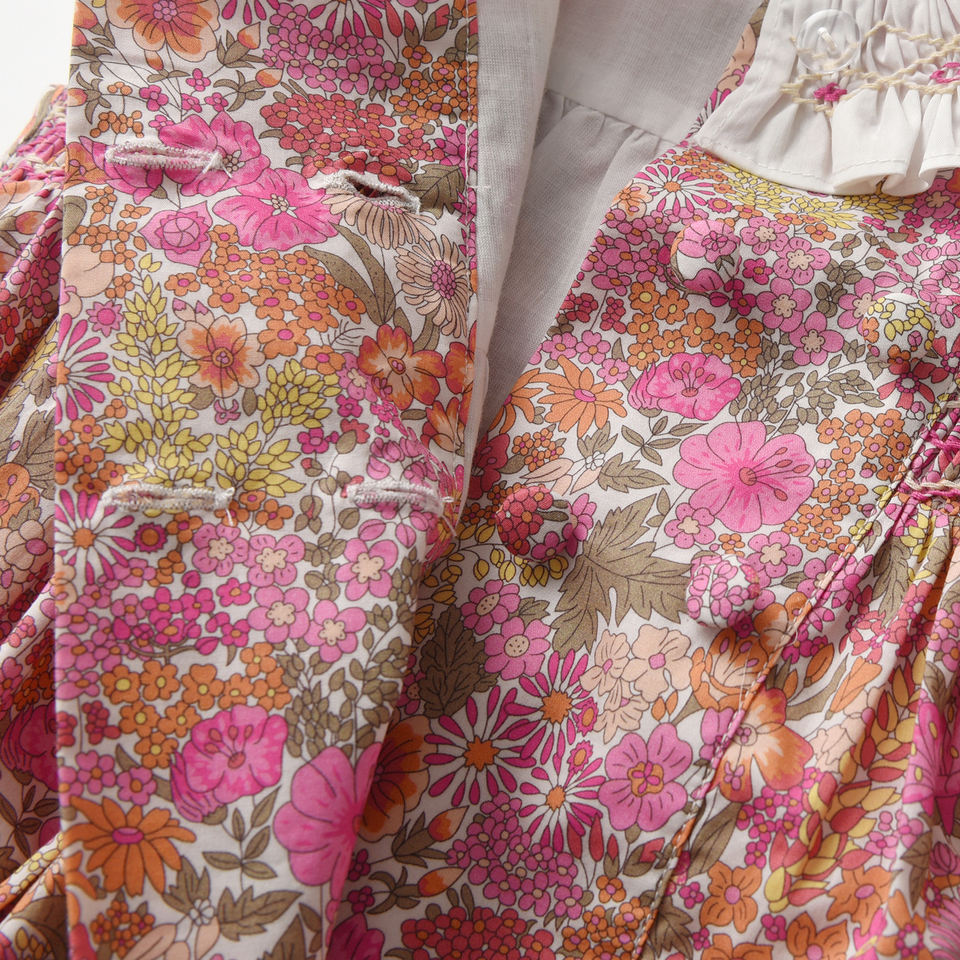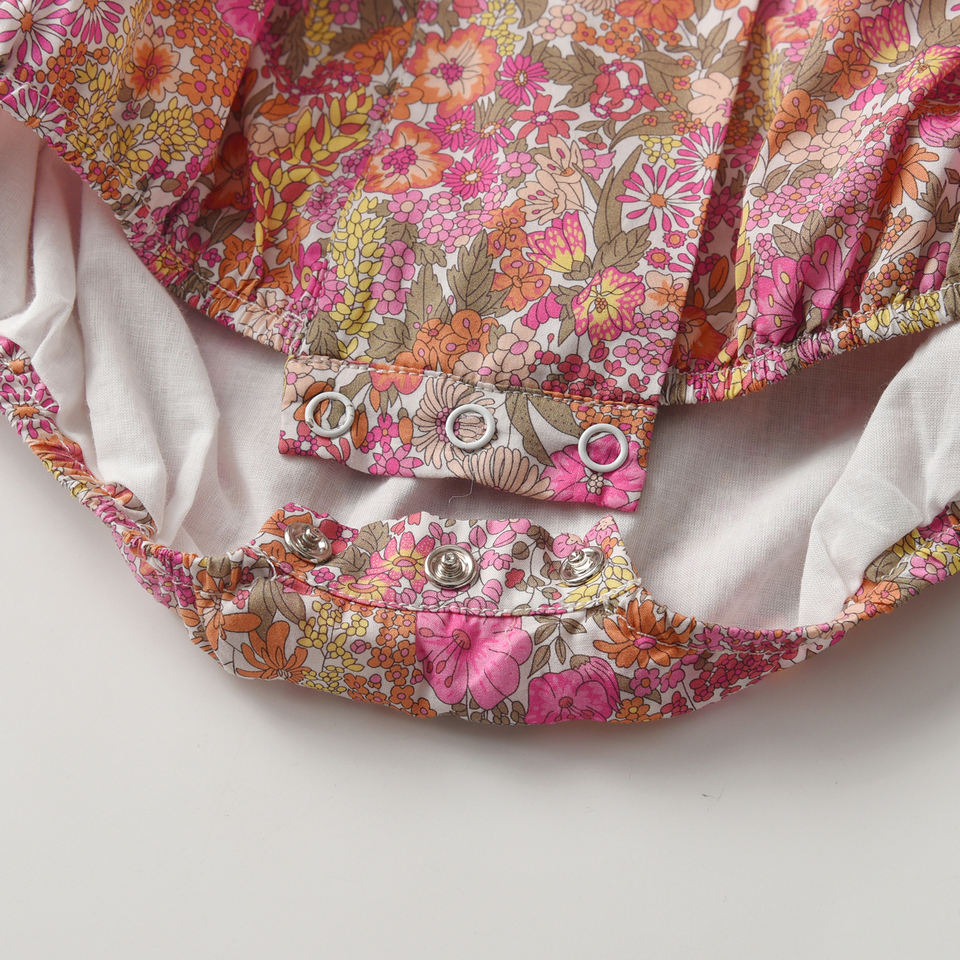 Organic Cotton Knitted Romper Baby Girls Floral Vintage Printed Smocked Ruffle Sleeveless Newborn Summer Birthday Clothing