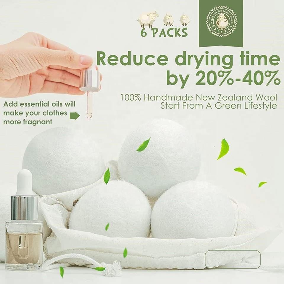 Organic Eco New Zealand Wool Dryer Balls 6 Pack 100% Handmade Fair Trade Organic No Lint Premium Quality