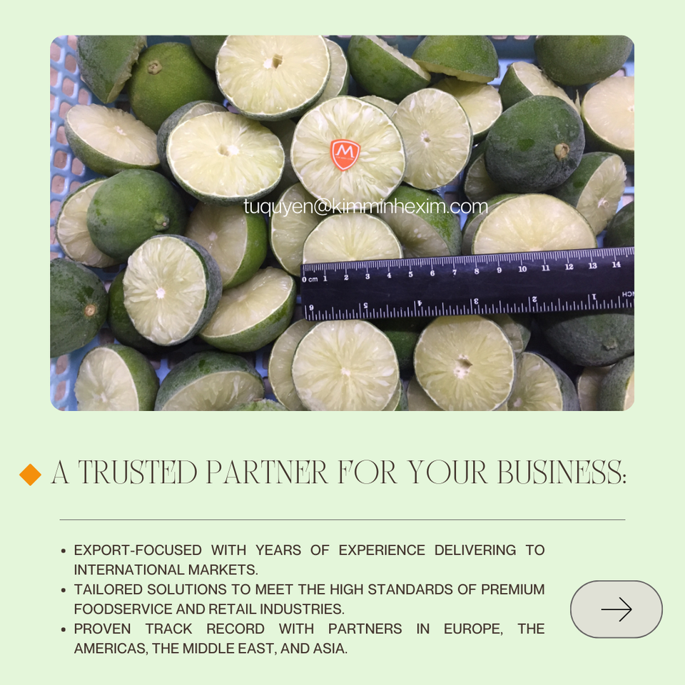 Organic Frozen Lime IQF Whole Sliced Ball Patterns Export-Grade Bulk Puree Vacuum Pack Packaging for Fruit Preservation