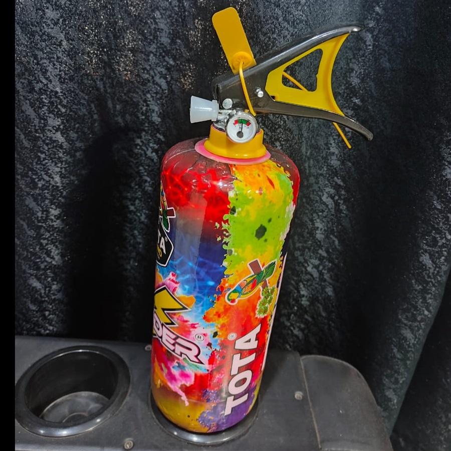 Iron cylinder with plastic nozzle colour powdermaterial