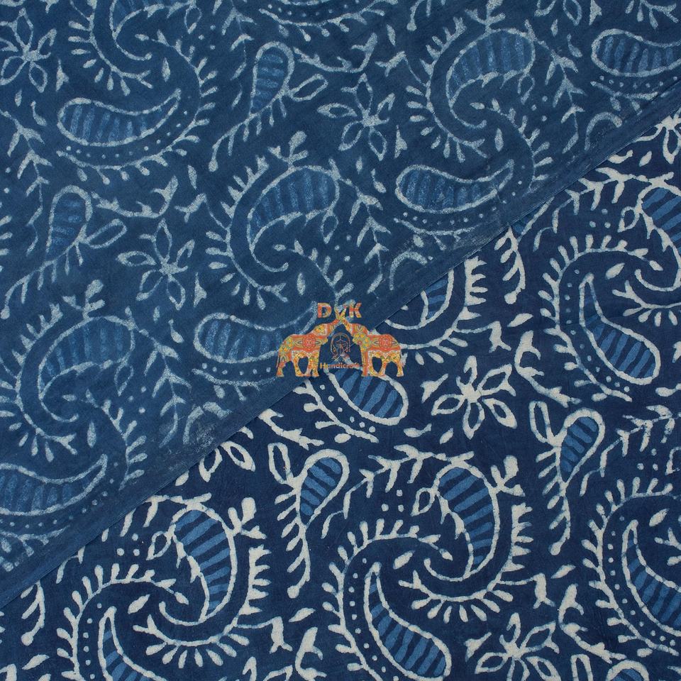 Tissu en coton indigo imprimé à la main en Inde, motif traditionnel, tissu léger pour rideaux et sacs