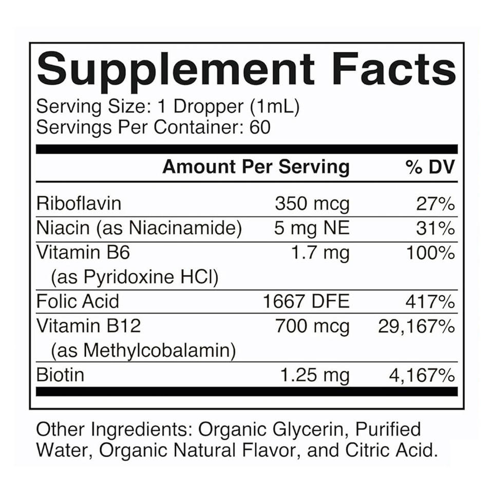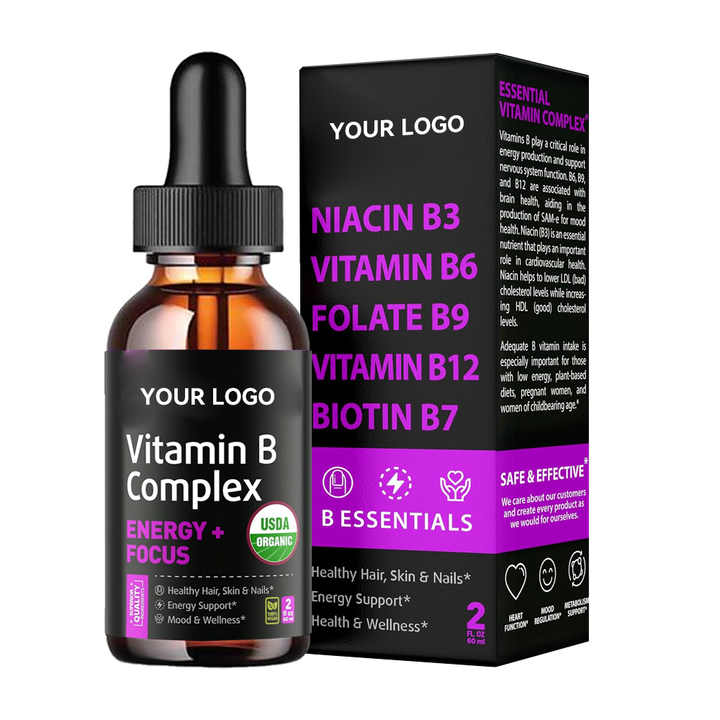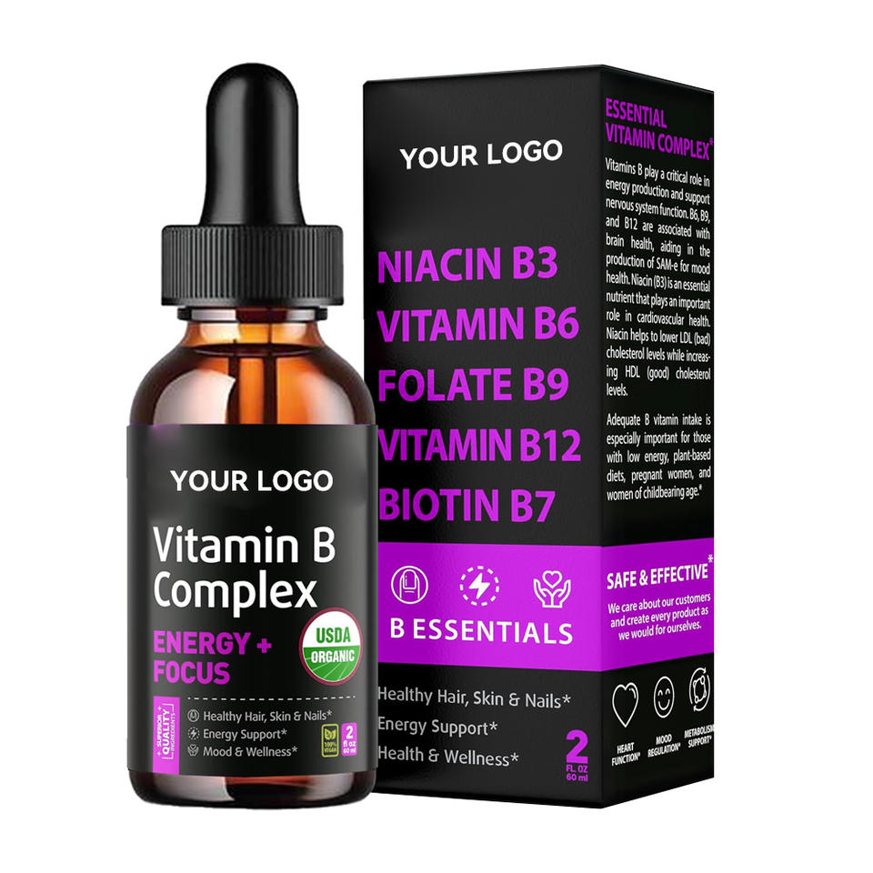 Commande en gros OEM – Gouttes liquides de Vitamine B Complexe : Niacinamide, Acide Folique, Méthyl B12, Biotine Haute Puissance pour l'Énergie et l'Immunité des Adultes