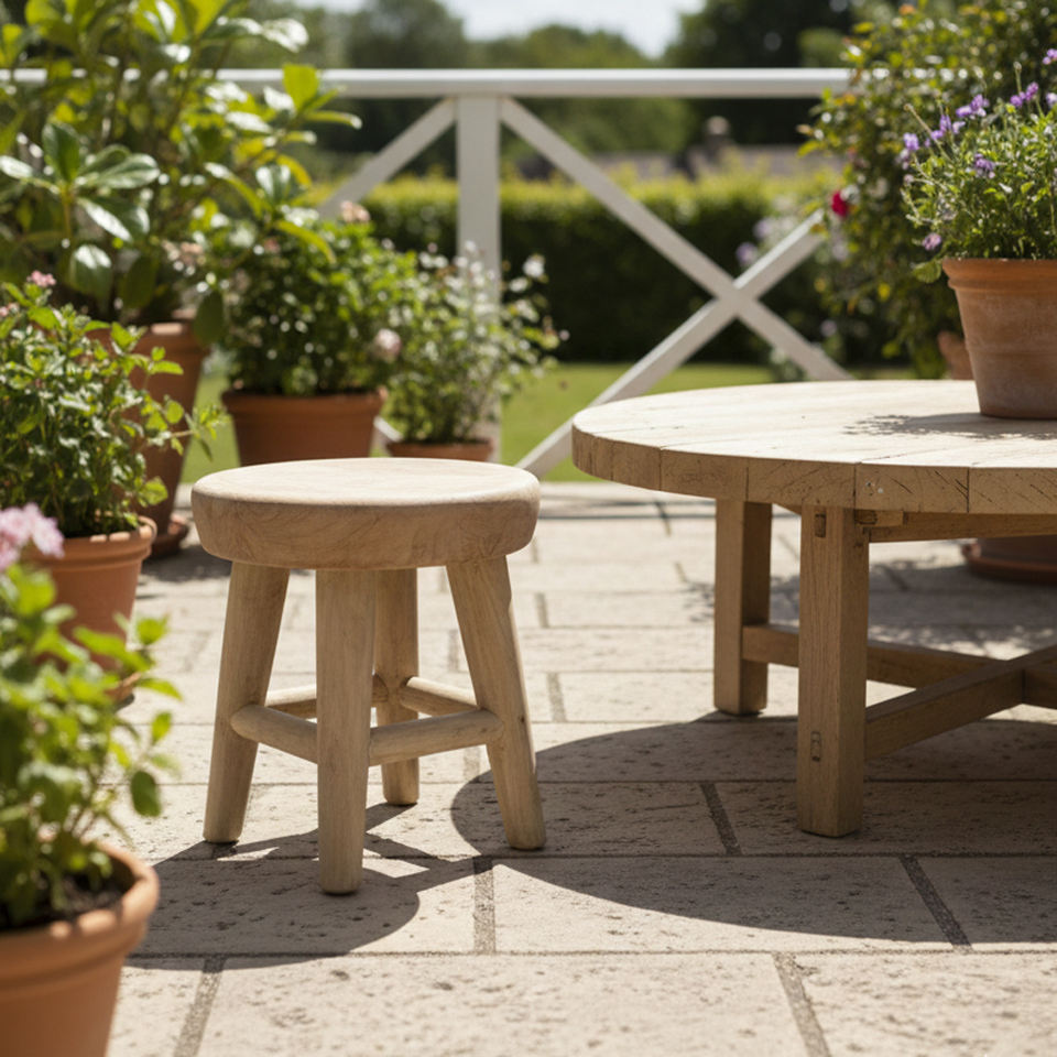 Tabouret en bois de teck massif, style contemporain, compact, fait main, pour appartement, chambre, hôpital, hôtel