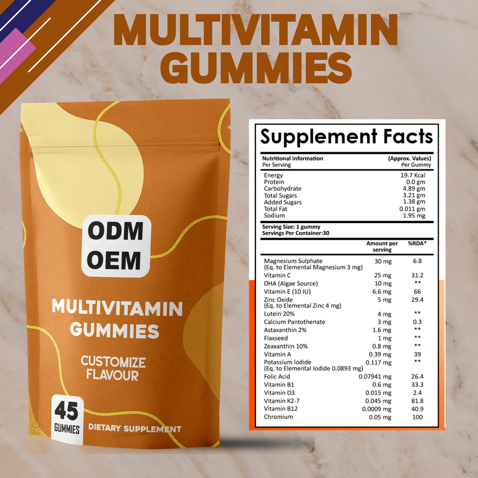 Paquet de gommes multi-vitamines organiques 45 en forme d'ours Disponible en différentes saveurs avec emballage personnalisé OEM ODM disponible