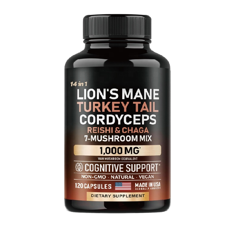 Ingrédient principal:Mélange complexe de crinière de lion, queue de dinde, chaga, cordyceps, reishi, maitake, shiitake et tremella
