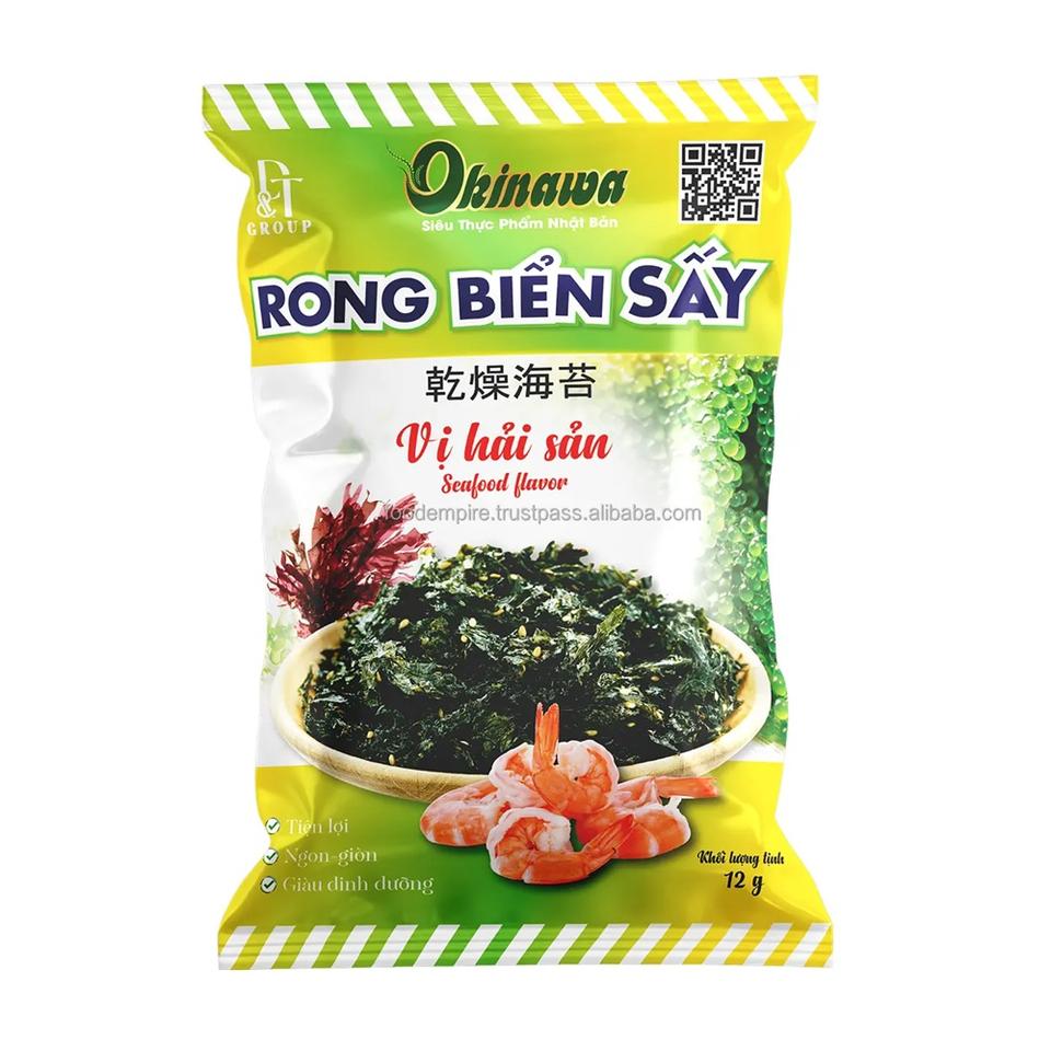 Organic Okinawa Salmon Flavored Crispy Seaweed Snack 12g Bag HACCP HALAL OEM Vietnam Nutritious Natural Seaweed Halal