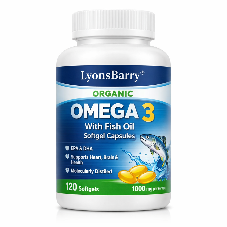 Capsules d'huile de poisson oméga 3 bio Lyonsbarry, 60 gélules/flacon - Complément alimentaire et sportif