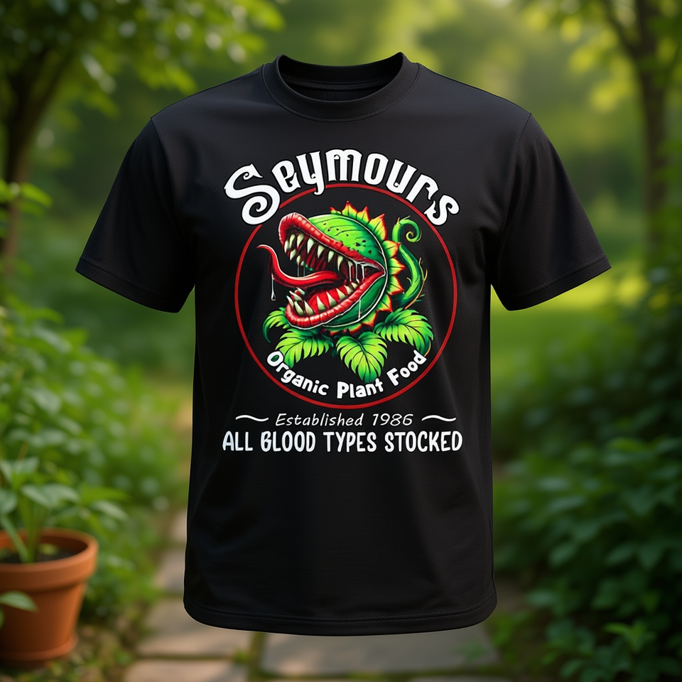 T-shirt promotionnel vintage à thème rétro biologique, végétal, humoristique et d'horreur