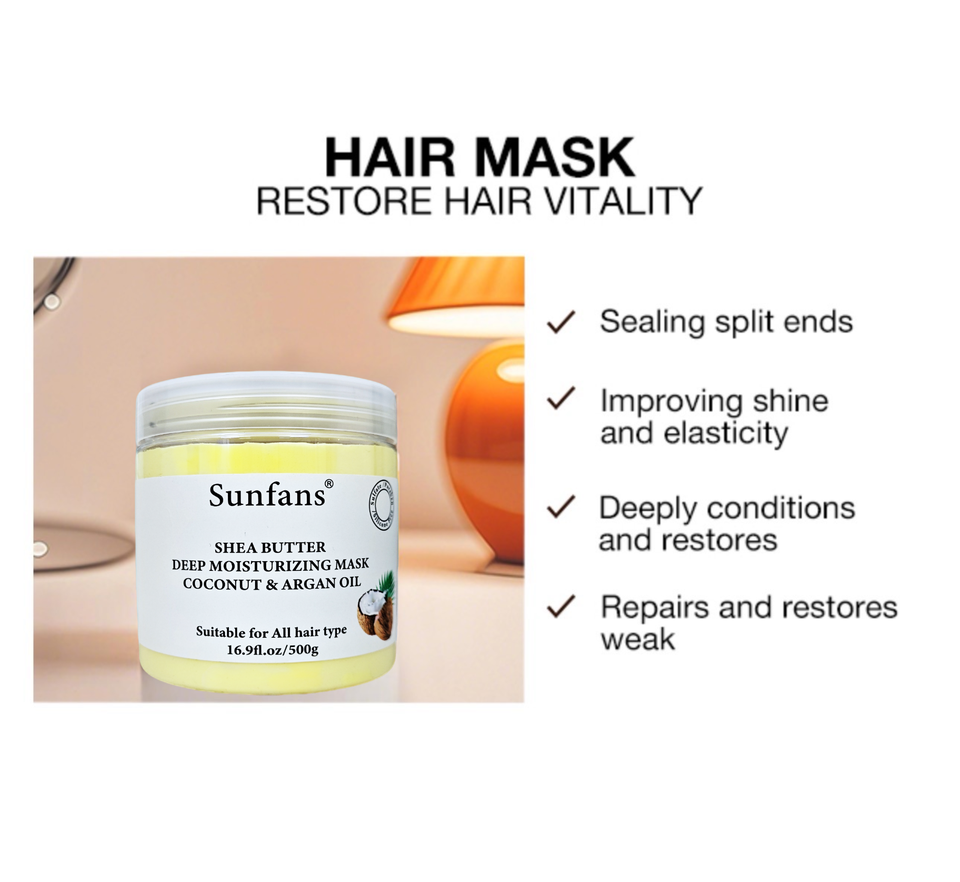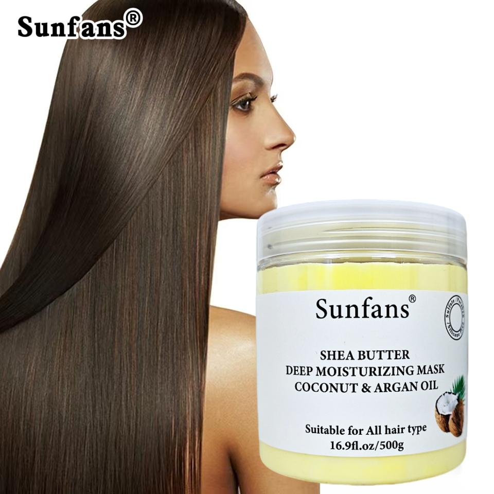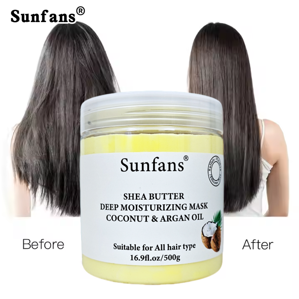 Masque capillaire hydratant au beurre de karité biologique avec huile de noix de coco et acides aminés, formule concentrée, masque capillaire anti-frisottis