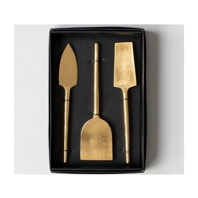 Ensemble de fromage en acier inoxydable de style biologique couverts polis dorés avec vaisselle d'épandage de fromage la plus vendue pour couper le fromage