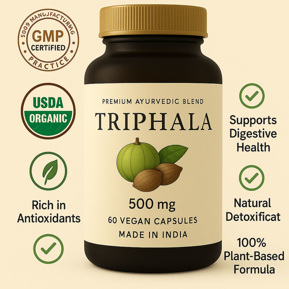 Organic Triphala 500mg 60 Vegan Capsules Daily Ayurvedic Wellness Support for Digestive Health Immunity Detox Pregnant Women)