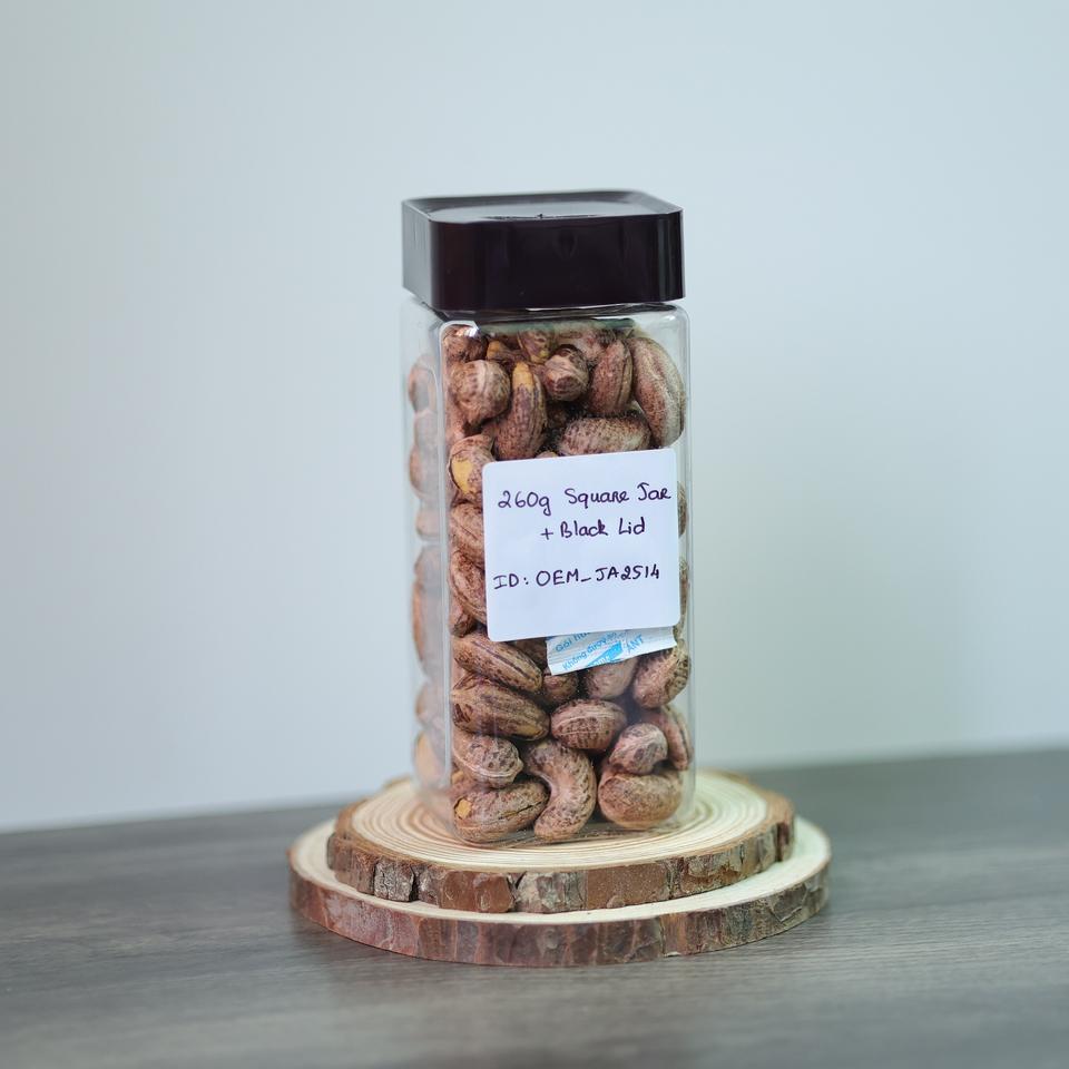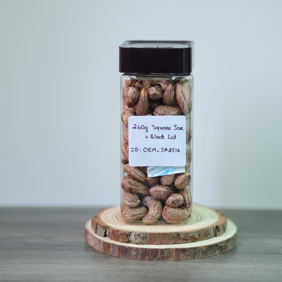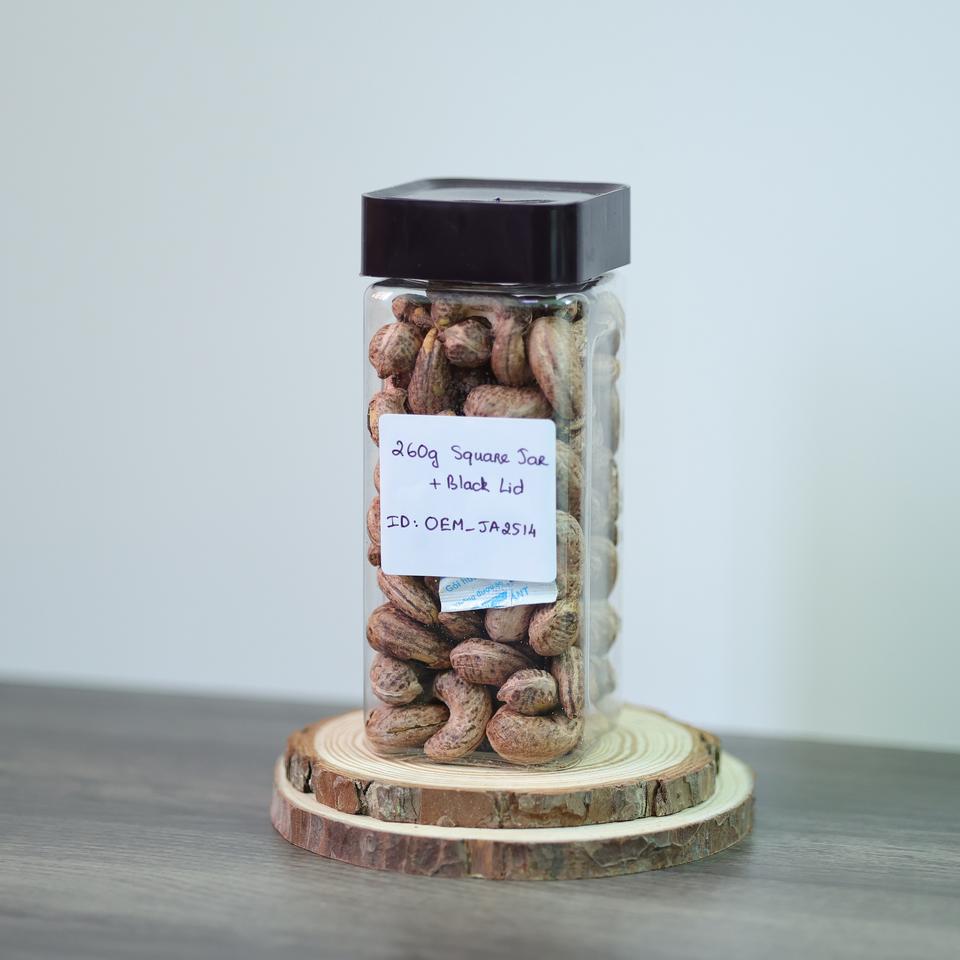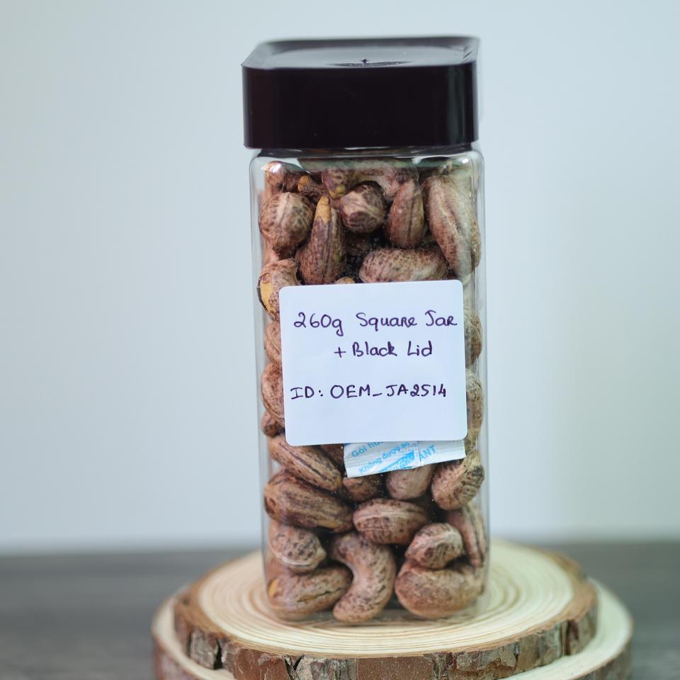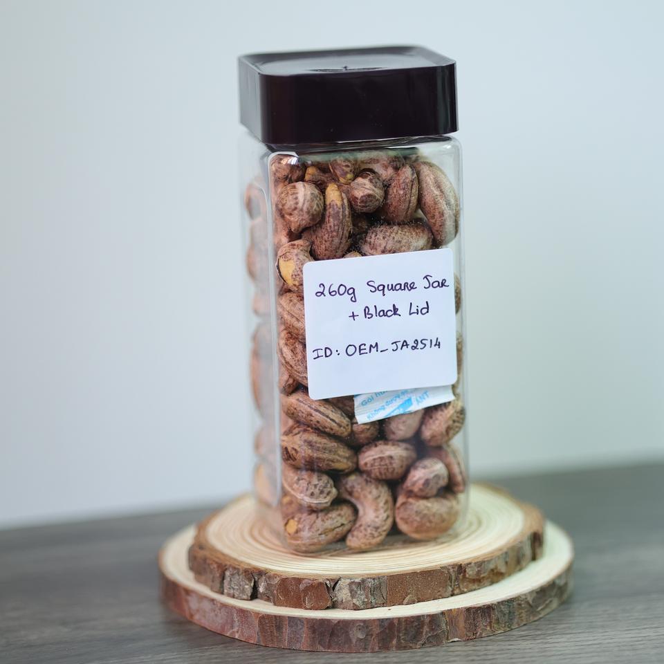 Organic Vietnam Roasted Cashews (Buttery Salty Flavor) 260g Square Jar (Black Lid)-OEM/Factory Direct Premium Quality Direct