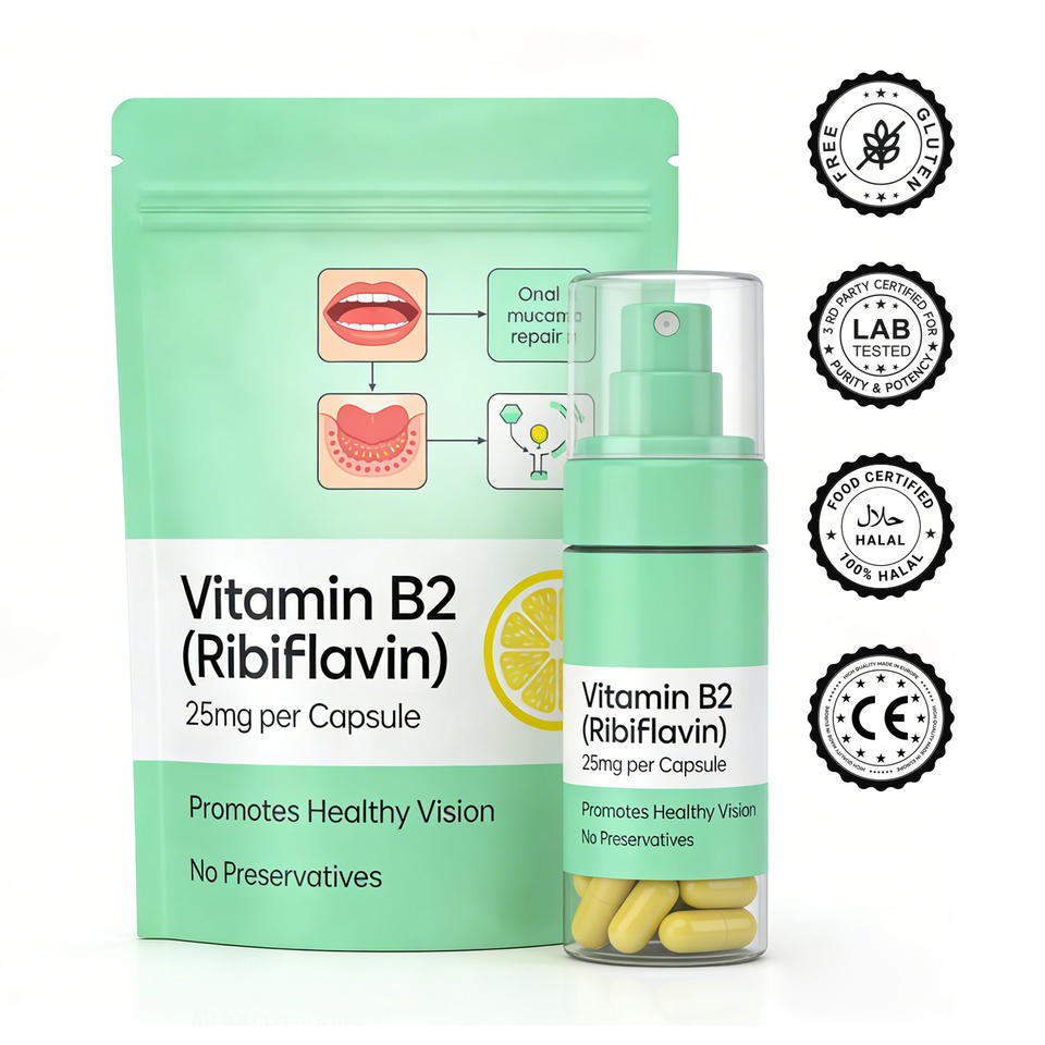 Capsules de Vitamine B2 Biologique, Riboflavine Naturelle, Mélange Personnalisé, Marque Privée, Service OEM ODM, Certifié HACCP ISO GMP NSF