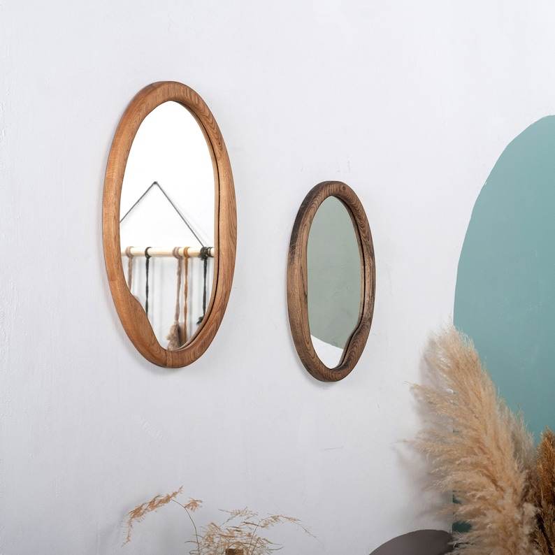 Organic White Oak and American Walnut Oval Mirror Mid Century Farmhouse Style Wooden Frame Design