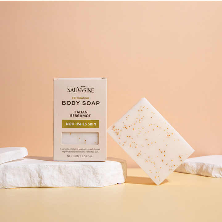 Savon de bain artisanal bio exfoliant et hydratant pour l'acné, effet éclaircissant et équilibrant le teint