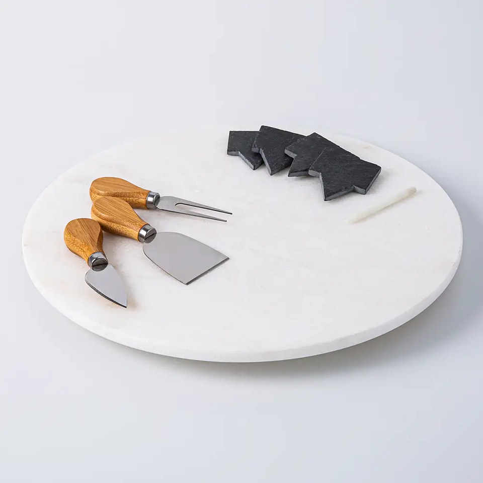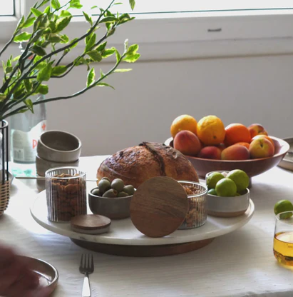 Plateau tournant Lazy Susan en marbre blanc fait main, idéal pour les biscuits – Nouveauté très prisée