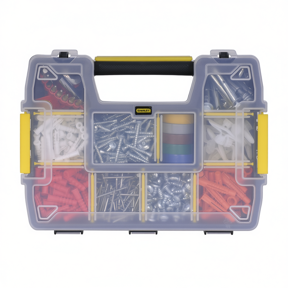 Boîte à outils Organiser Sort Master Light avec compartiments transparents pour le rangement et le transport de matériel