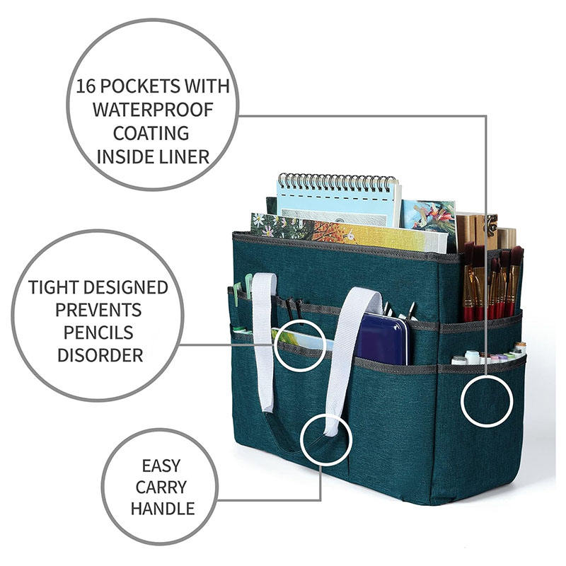 Sac fourre-tout organisateur avec fermeture éclair, grand sac de rangement pour matériel artistique et de couture, plusieurs poches, polyester vert bleuté