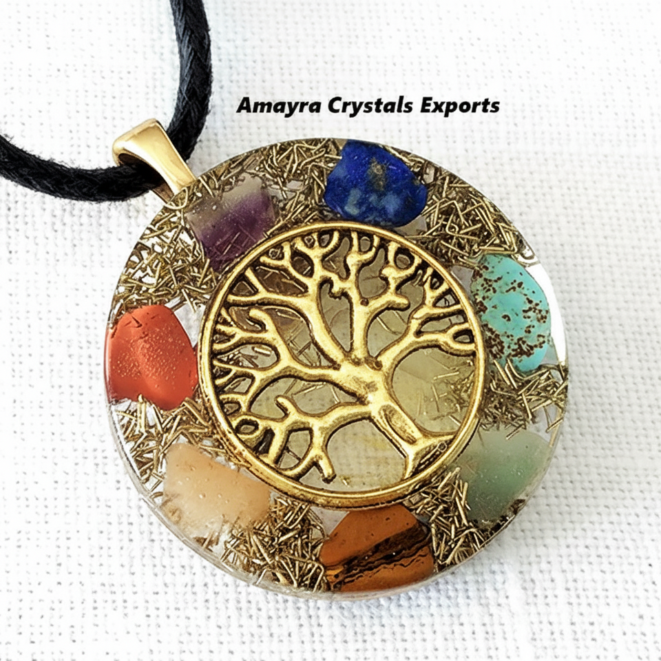 Pendentif Orgonite sept chakras arbre de vie pendentif de guérison orgone des cristaux Amayra exportation