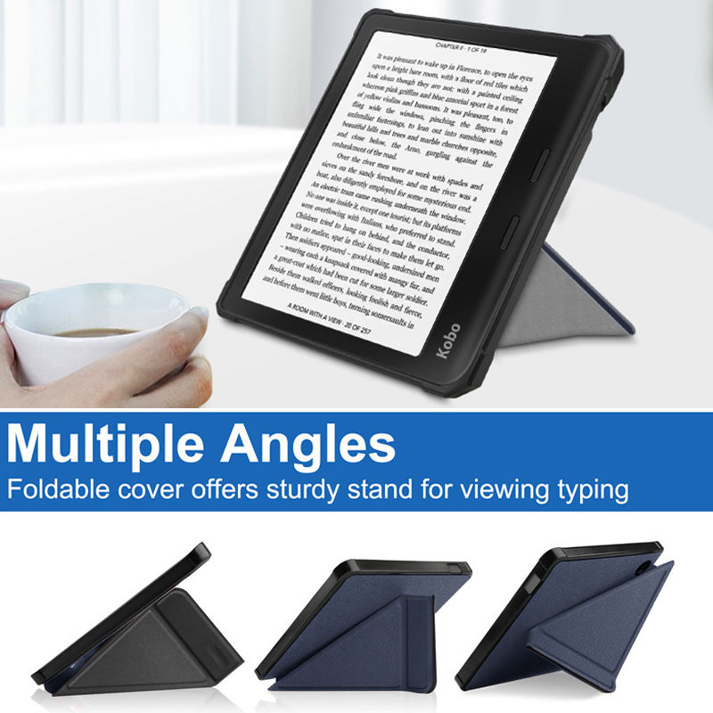 Étui Origami pour Kobo Libra 2, 7 pouces housse pour Kobo Libra 2 N418 support pliant intelligent en cuir PU Capa housse de sommeil magnétique