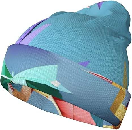 Bonnet d'hiver chaud en acrylique 100% tricoté, imprimé numériquement, motif grues origami multicolores, élégant, unisexe, sans bord, pour femme