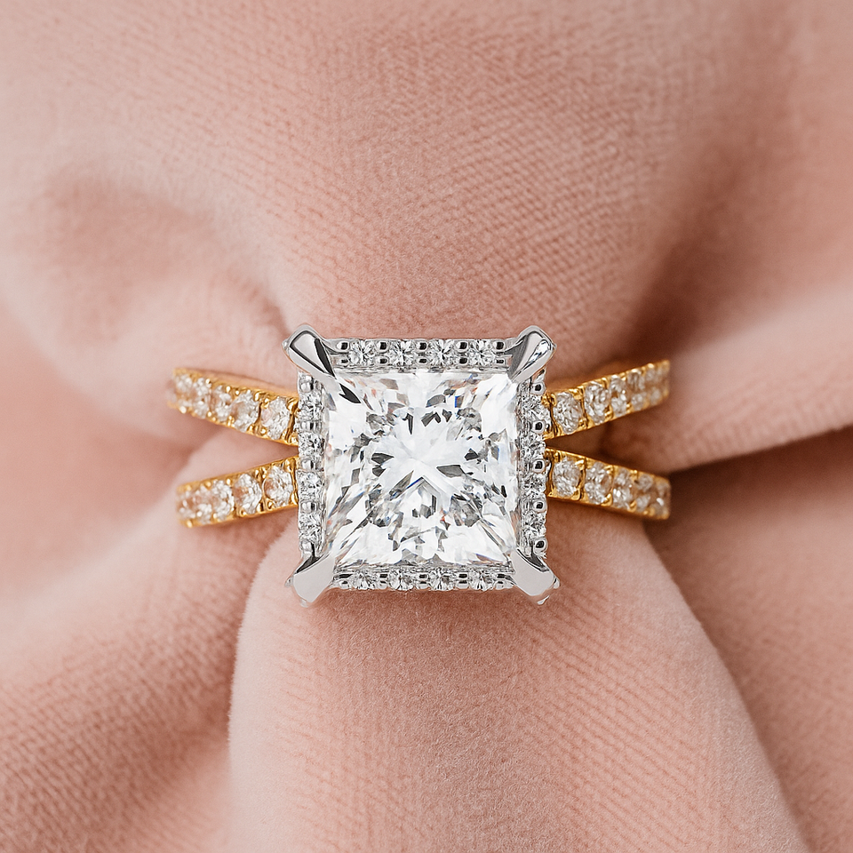 Poids du métal:5.00 - 7.68 Bague en moissanite taille princesse - Carat