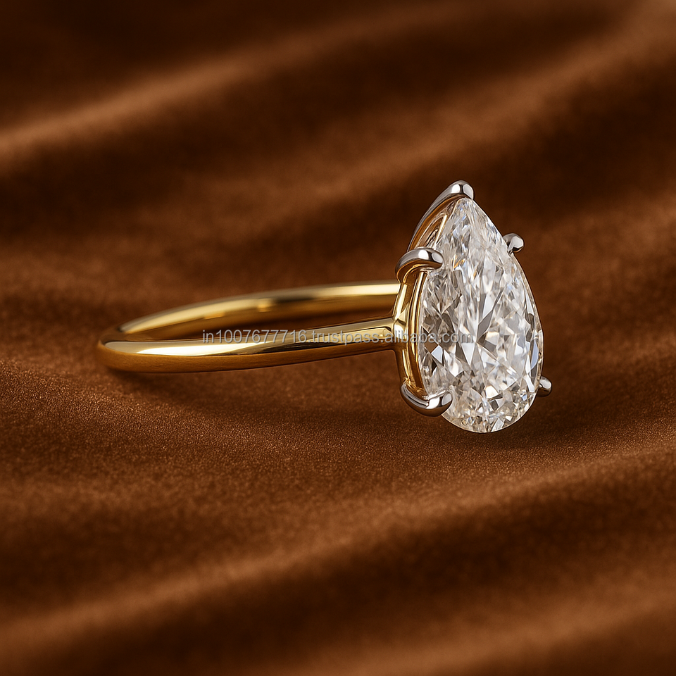 Bague de fiançailles et de mariage en moissanite taille poire 2,00 carats, VVS2, or jaune, sertie de barres, certifiée IGI, cadeau de mariage, fête