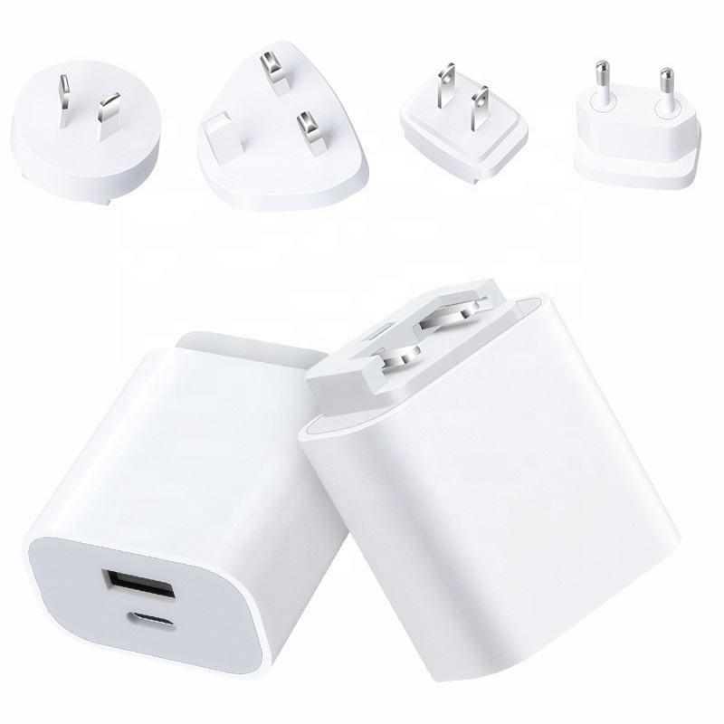 Chargeur rapide double port USB Type C 20 W d'origine pour téléphone Apple iPhone, prise interchangeable AU EU UK US, chargeur PD 20 W