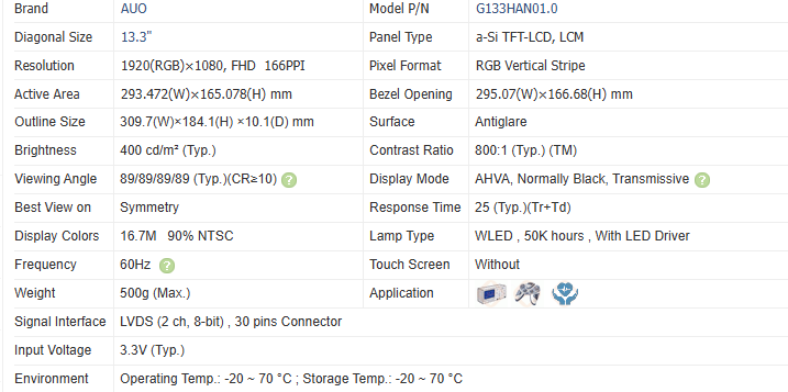 Product Name:G133HAN01.0