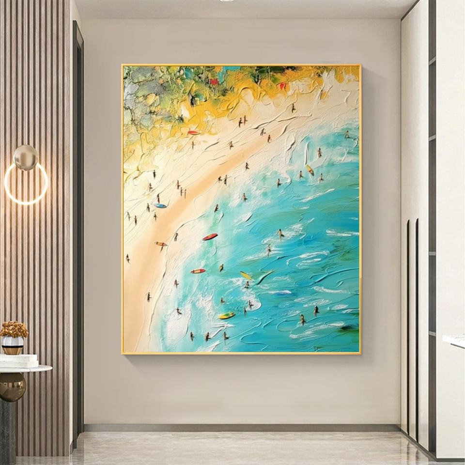 Peinture acrylique abstraite originale sur toile, nature morte de plage, art doré estival de bord de mer pour bureau, salon, mur, maison, hôtel