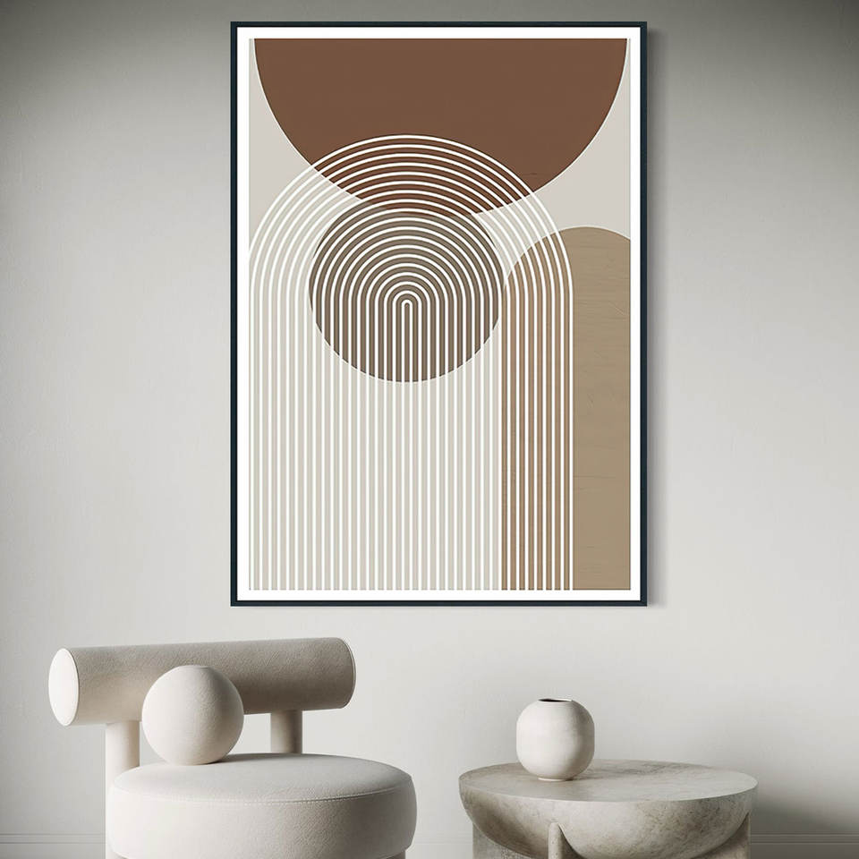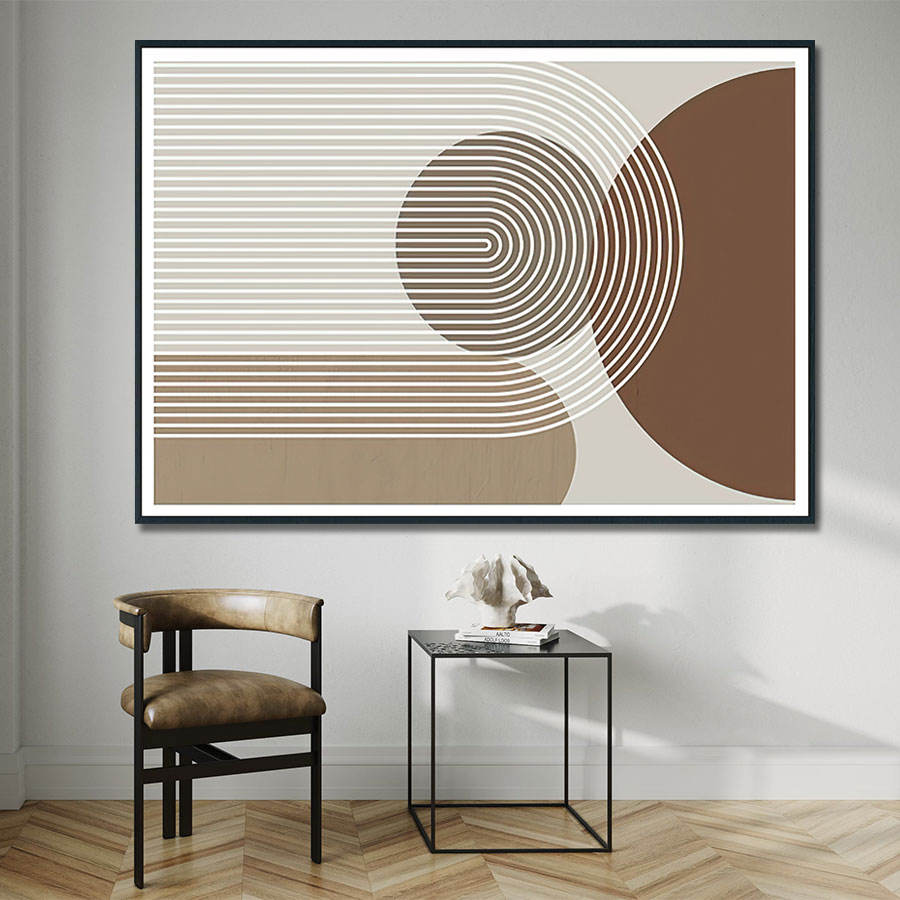 Peinture Murale Abstraite Simple sur Toile, Huile, Design Arc Nordique Semicercle, Décor Mural Marron Gris Minimaliste, Art Original Direct Usine