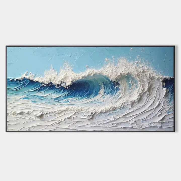 Peinture à l'huile abstraite originale faite à la main, moderne, grande, bleue et blanche, vagues de l'océan, paysage marin texturé 3D, art mural d'intérieur
