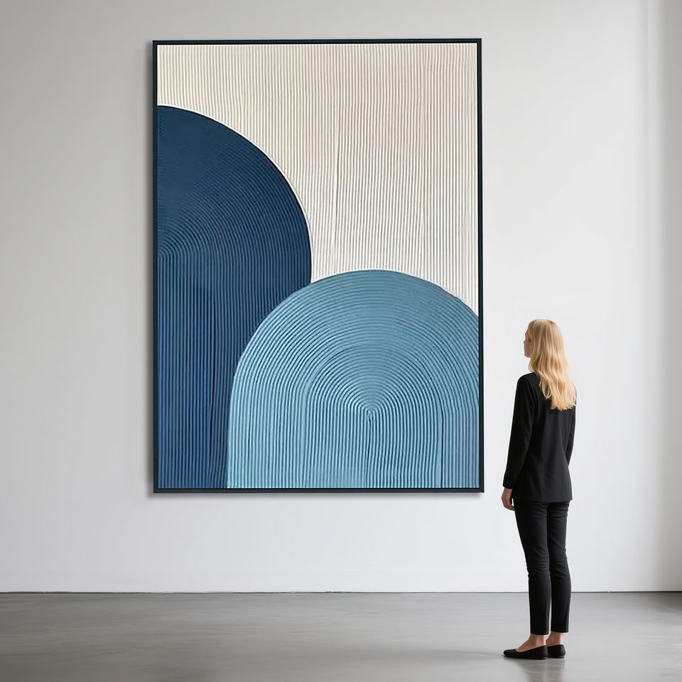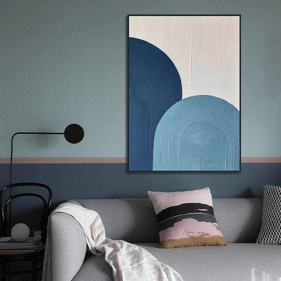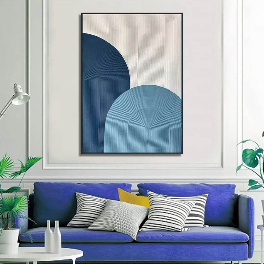 Peinture à l'huile abstraite bleue texturée 100 % peinte à la main sur toile, haute qualité, pour décoration murale intérieure
