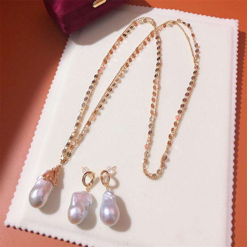 Ensemble de boucles d'oreilles en chaîne de pull en perles de forme baroque originale, bijoux fins haut de gamme avec une atmosphère naturelle, design simple et polyvalent